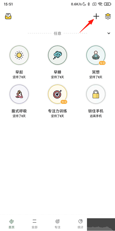 1、打开小习惯APP进入首页,点击右上角的+按钮进入自定义添加项目打卡习惯;
