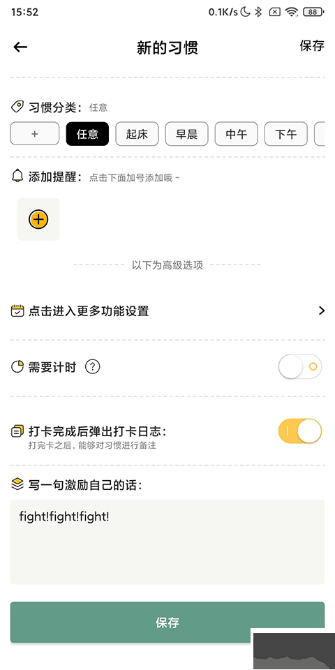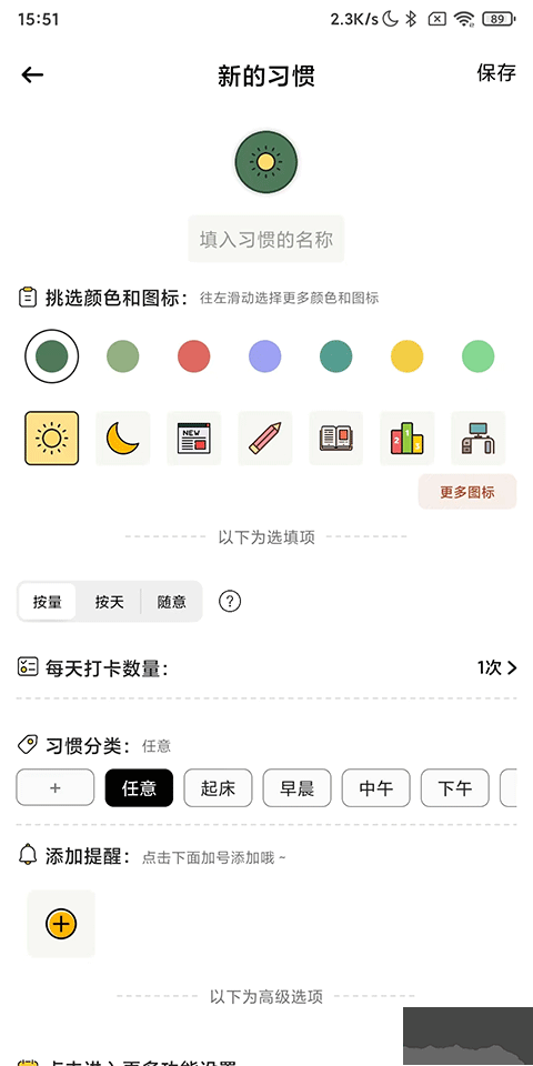 4、添加习惯:自由设定并加入你希望养成的新习惯。