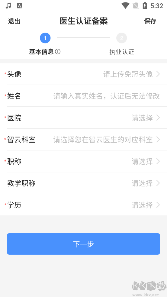 2、随后进行认证,输入基本信息、职业认证,点击保存