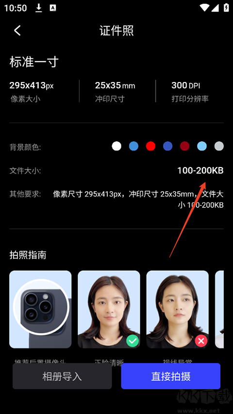 照片大小可以通过换照片类型来进行调整的,比如一寸大小的寸照照片大小最多200kb
