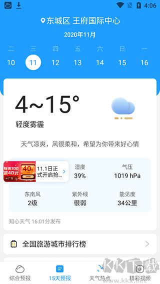综合提供穿衣、洗车、运动、紫外线等多项生活建议,室内外活动安排更从容。