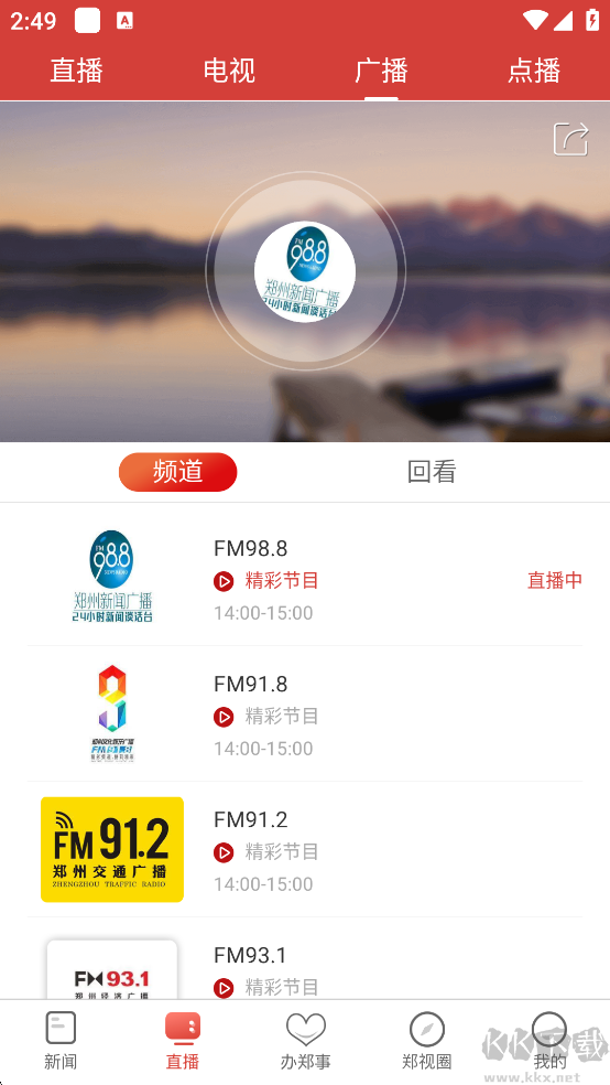 2、郑视频App依托郑州广播电视台资源,全面覆盖郑州台旗下所有电视频道。