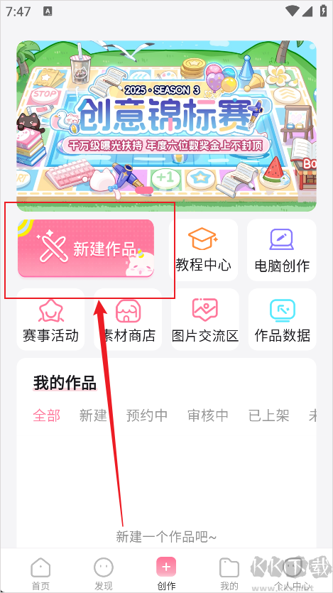 1、打开易次元APP以后,点击菜单中的【创作】。