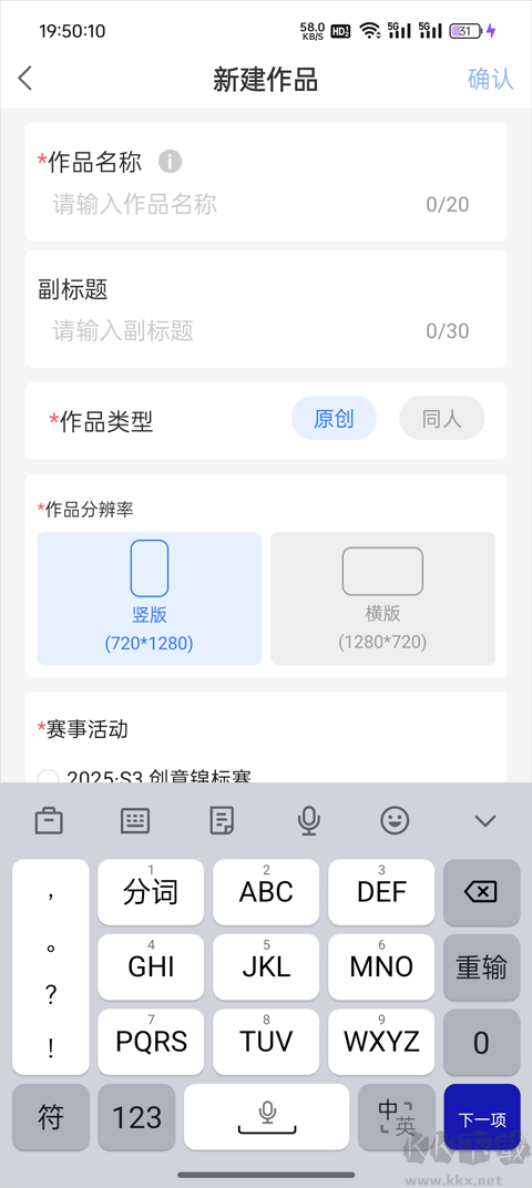 3、切换到作品信息页面以后,将作品相关信息补充完整点击确定。