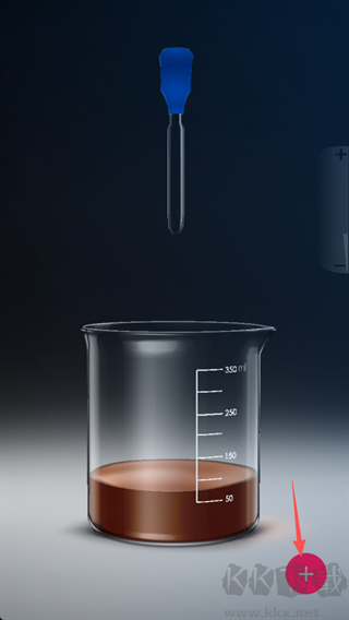 滑动屏幕右上侧的“+”或“-”按钮,设置要倒入烧杯中的试剂容量。
