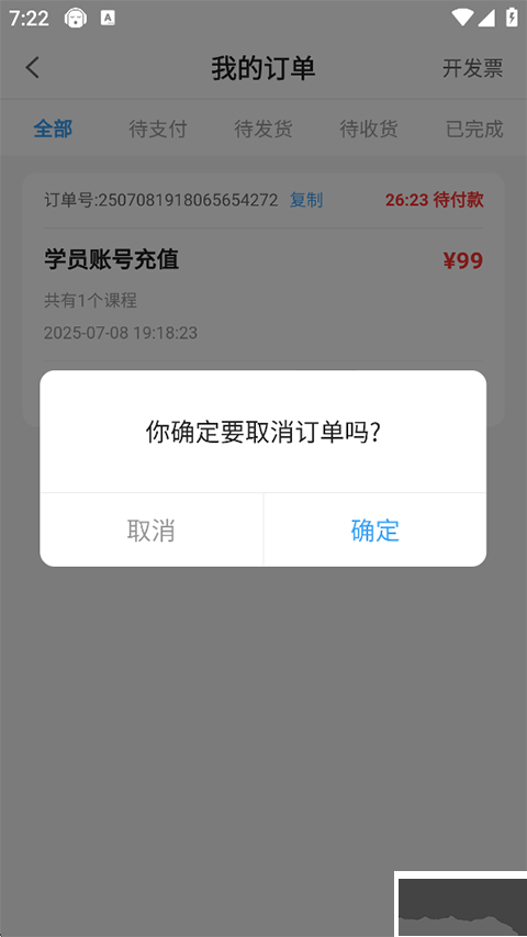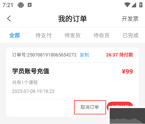 2、在我的订单页找到还未支付的订单点击取消订单,若您已经支付下单,也可在此页面找到订单点击申请退款按钮;