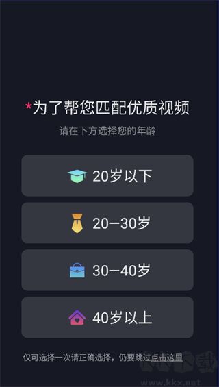 1、点击下载和安装该app,打开后为了更好的帮助你匹配优质视频选择您的年龄,性别。