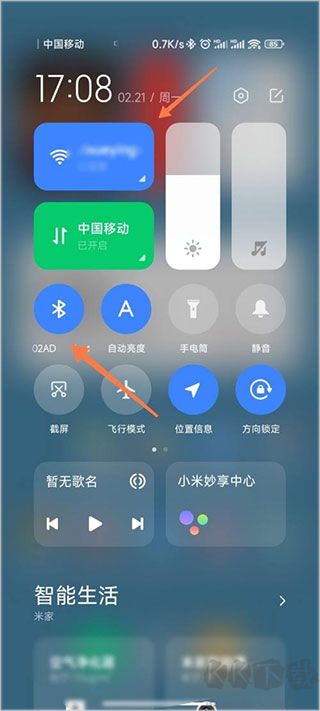 1、在通知栏中开启手机的【WiFi、手机网络、蓝牙】;
