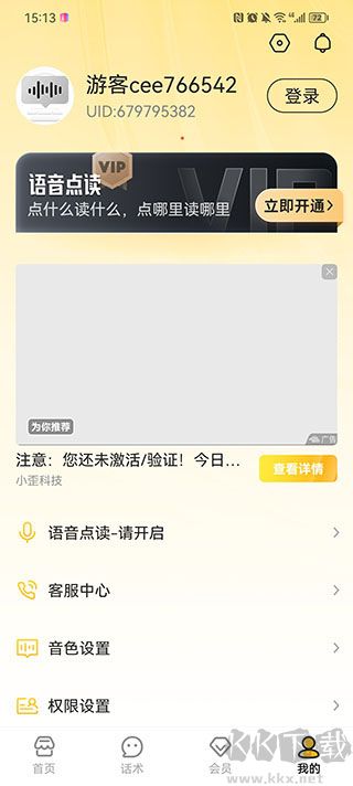 5、打开我的可以进入个人中心,在个人中心可以查看自己的信息,使用语音点读功能,也可以联系客服询问问题等等。