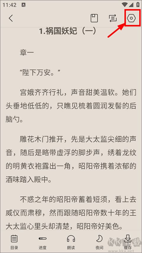 2、进入阅读,用户打开阅读功能栏,点击右上角设置按钮;