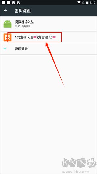 2、软件将调到手机键盘设置界面,将输入法设为友友输入法。