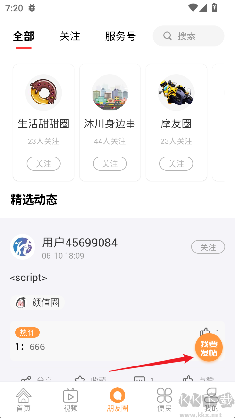 1、启动程序,轻触下方菜单栏的【朋友圈】选项。
