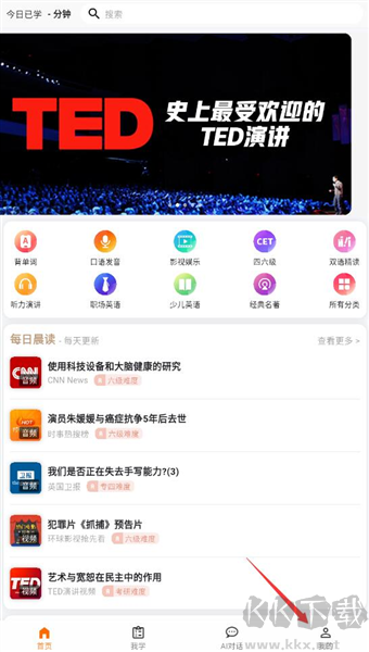 1、口语跟读:智能实时评估发音,逐句跟读、逐词打分,帮你突破“不敢开口”的障碍。