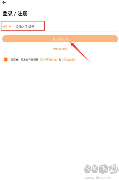 3、输入手机号,勾选"我同意..."点击发送验证码,按提示完成操作即可完成注册