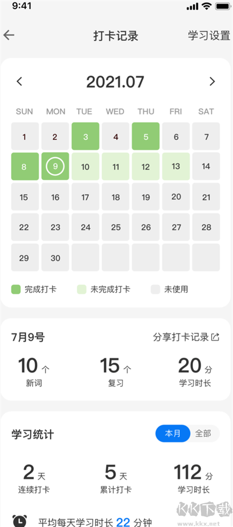 每天抽出一点时间学习,可按单词数量或学习时长灵活安排。