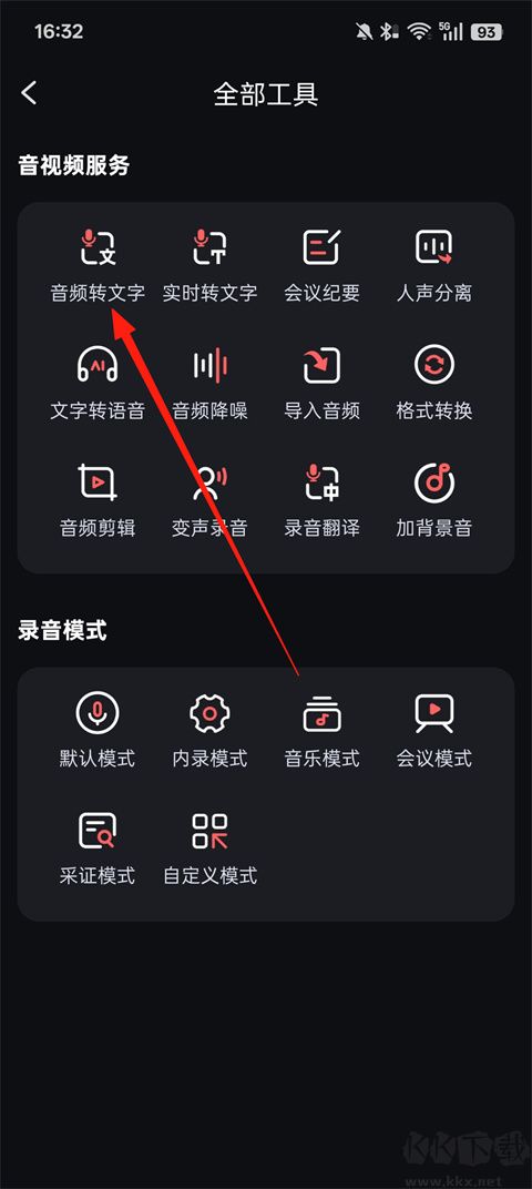 2、选择【音频转文字】功能