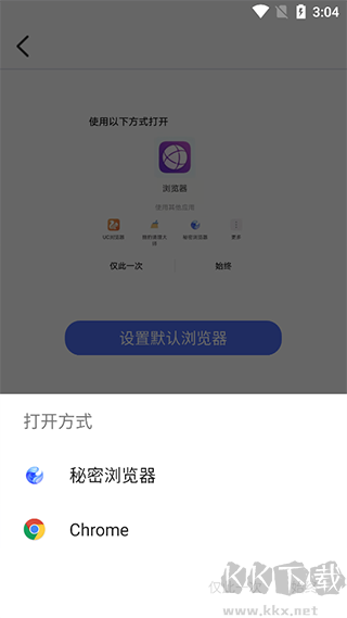 3、然后在弹出的选项中选择【秘密浏览器】或手机中已安装的浏览器