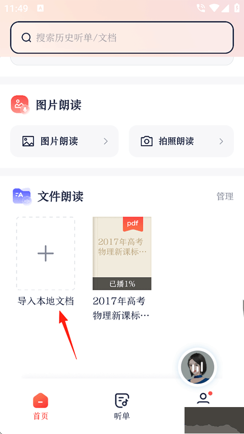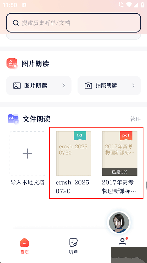 3、导入的本地文件可以在首页的文件朗读下管理查看。