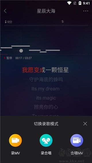 录歌过程中可随时在音频与MV模式间切换,无需暂停录制,操作流畅不间断。