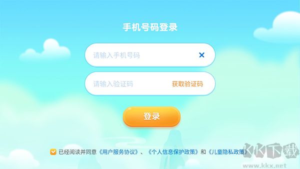 家长在应用商店获取并启动程序后,轻触中央快速登录键跳转至登录界面,使用手机号接收短信验证码完成登录。