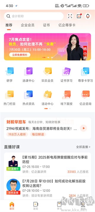 专家直播:财税专家线上实时讲解,在家提升实操技能。