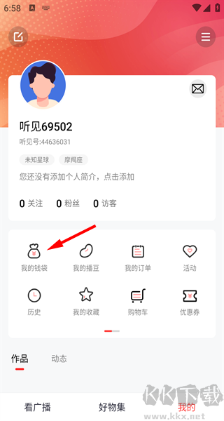1、打开应用个人中心界面,选择“我的钱袋”功能。