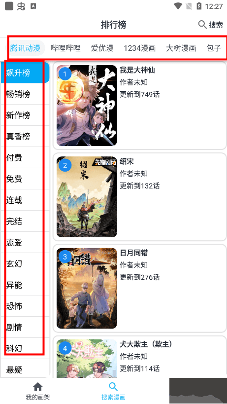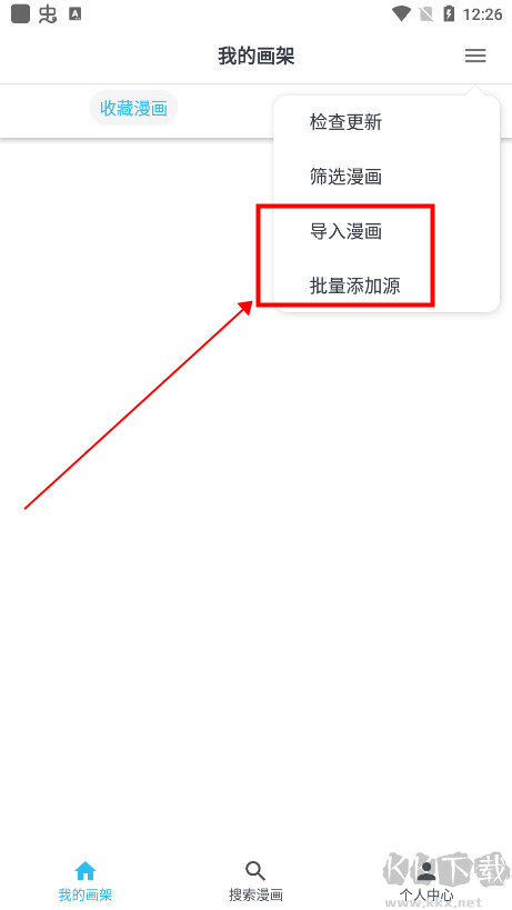 2、我的画家,可以点击右上角,导出漫画、批量添加源等;