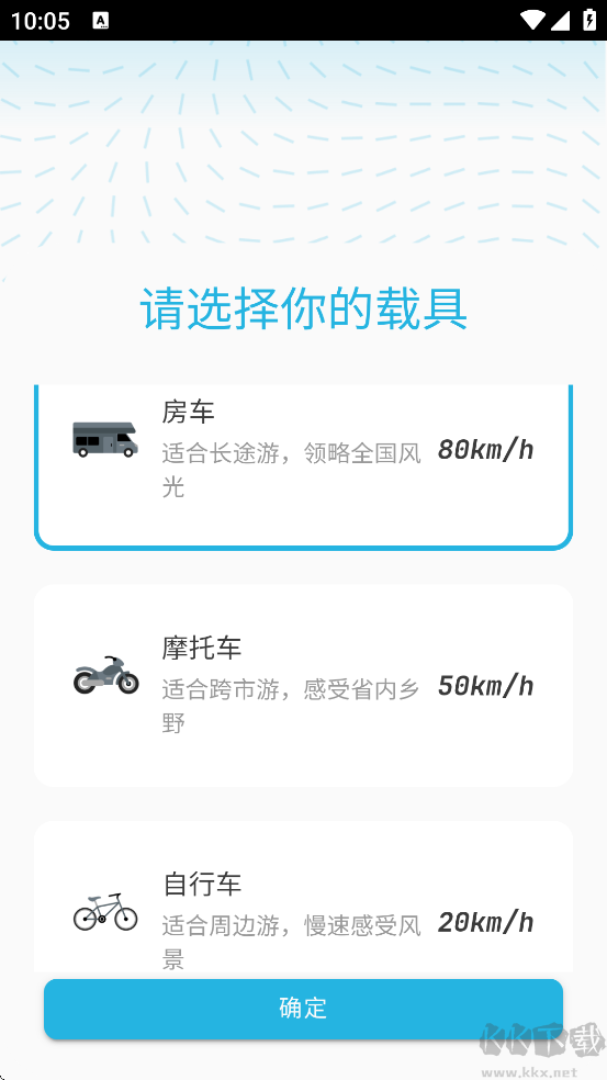 2、挑选出行工具(例如单车、摩托、家庭轿车等),应用会依据所选工具的行驶速率,推算实时所在位置。