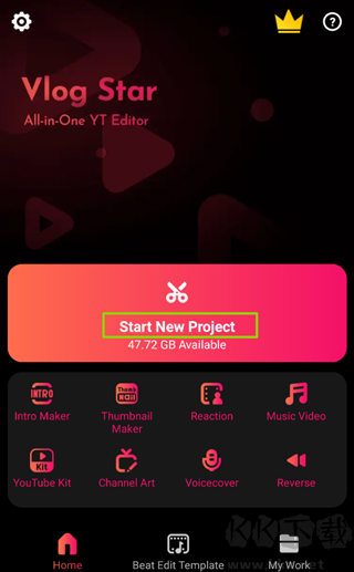1、打开VlogStar App,点击【Start New Project】开始新项目。
