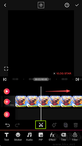 3、滑动素材点击【剪刀】图标可以进行剪切,去掉多余的内容。