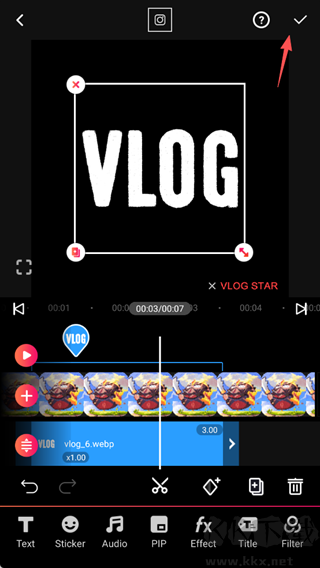 5、剪辑完成后,点击右上角的【√】即可保存。