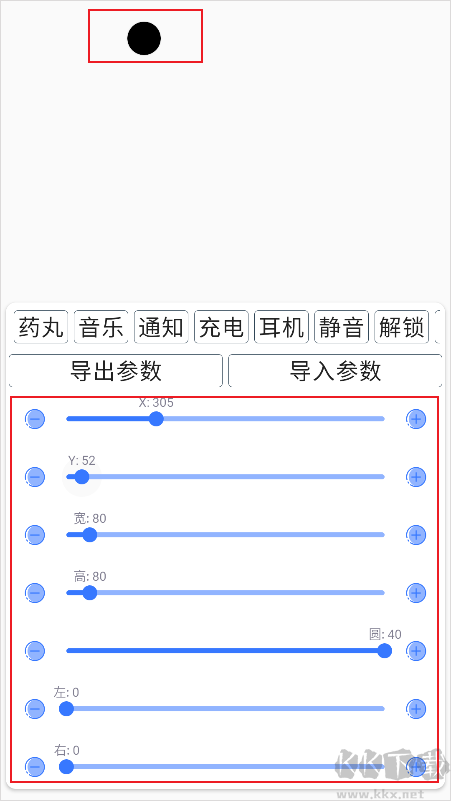 2、然后再调节圆点的位置,使圆点与手机挖孔重合。