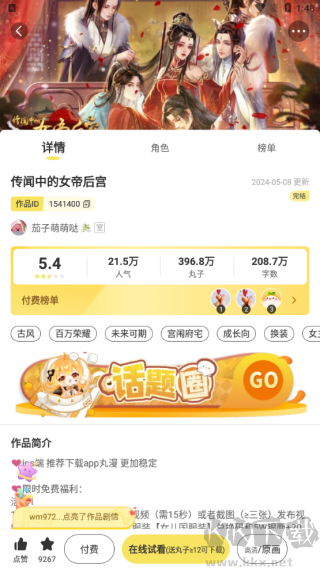 3、在漫画详情页中,点击右上角或页面中的“分享”按钮。