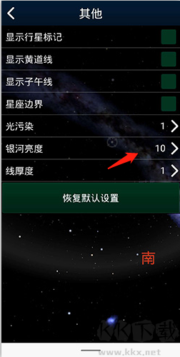 3、进入“银河亮度”选项,将亮度调到最大,也就是10。