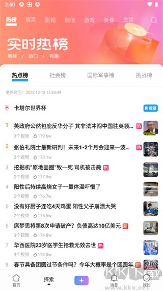 4、在探索页面点击热榜还有近期热门头条资讯浏览,掌握最新热门信息。
