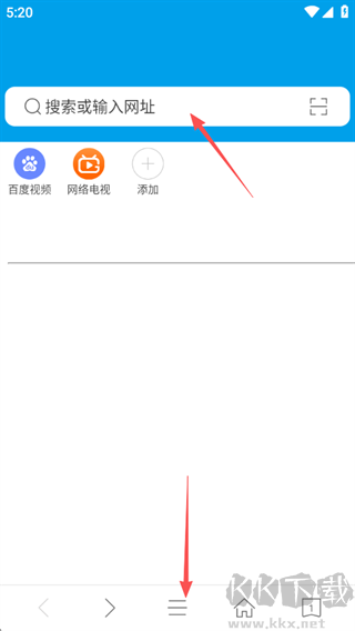 2、进入用户搜索或者输入网址就能搜索你想了解的内容,选择下方三条横线可以打开更多功能;