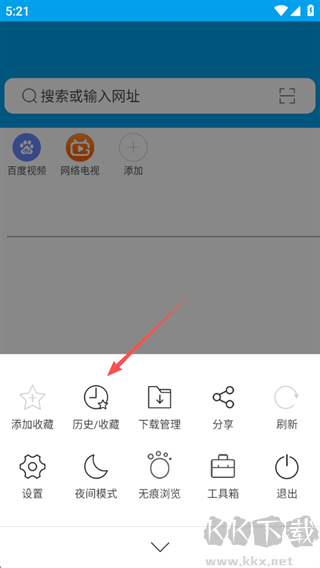 3、在这里点击历史/收藏就能打开历史浏览记录;