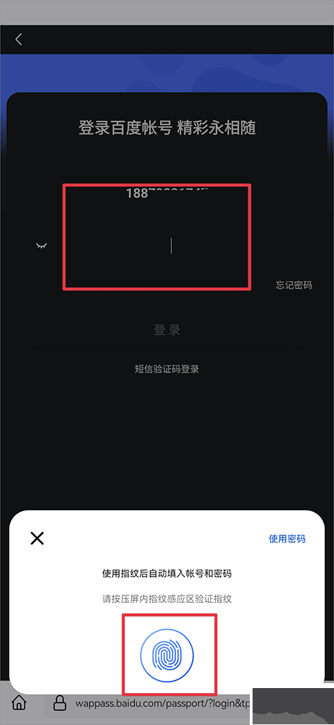 4、最后在百度网站中进行登录账号时,使用指纹验证后就会自动添加账户和密码了