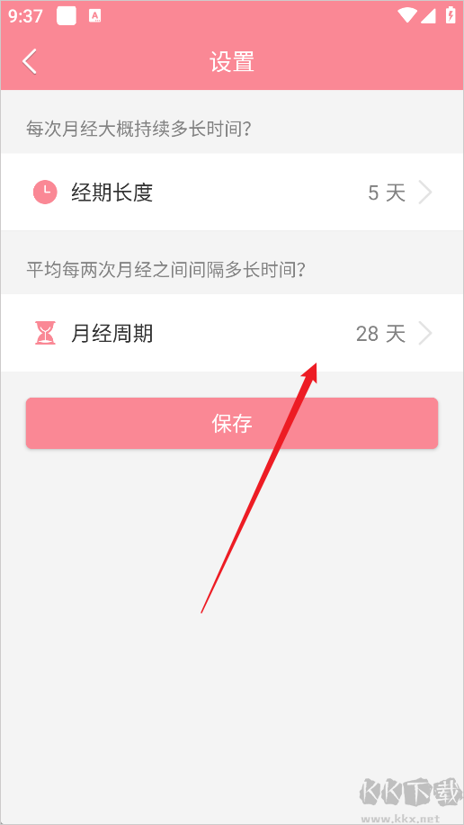 2、然后选择月经周期