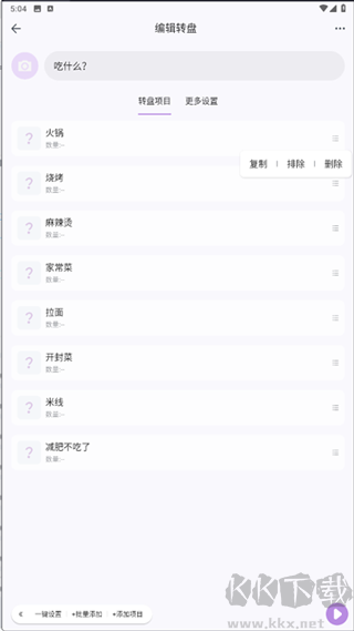 3、可将一日三餐的菜名直接填入转盘,中午吃什么?转一下就知道,吃饭不再犯难。