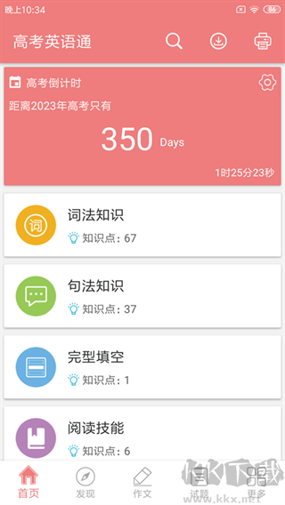 高考英语通app是一款为高考生打造的英语学习软件,涵盖海量高考知识点详解,还把内容细化为词法知识、句法知识、完形填空、阅读理解、书面表达等题型板块,帮助用户快速提升英语水平。软件配备专项练习、模拟试题、真题练习等多种题库,帮助学生强化知识点记忆,还支持按照地区筛选练习试卷。需要的朋友快来下载试试吧!