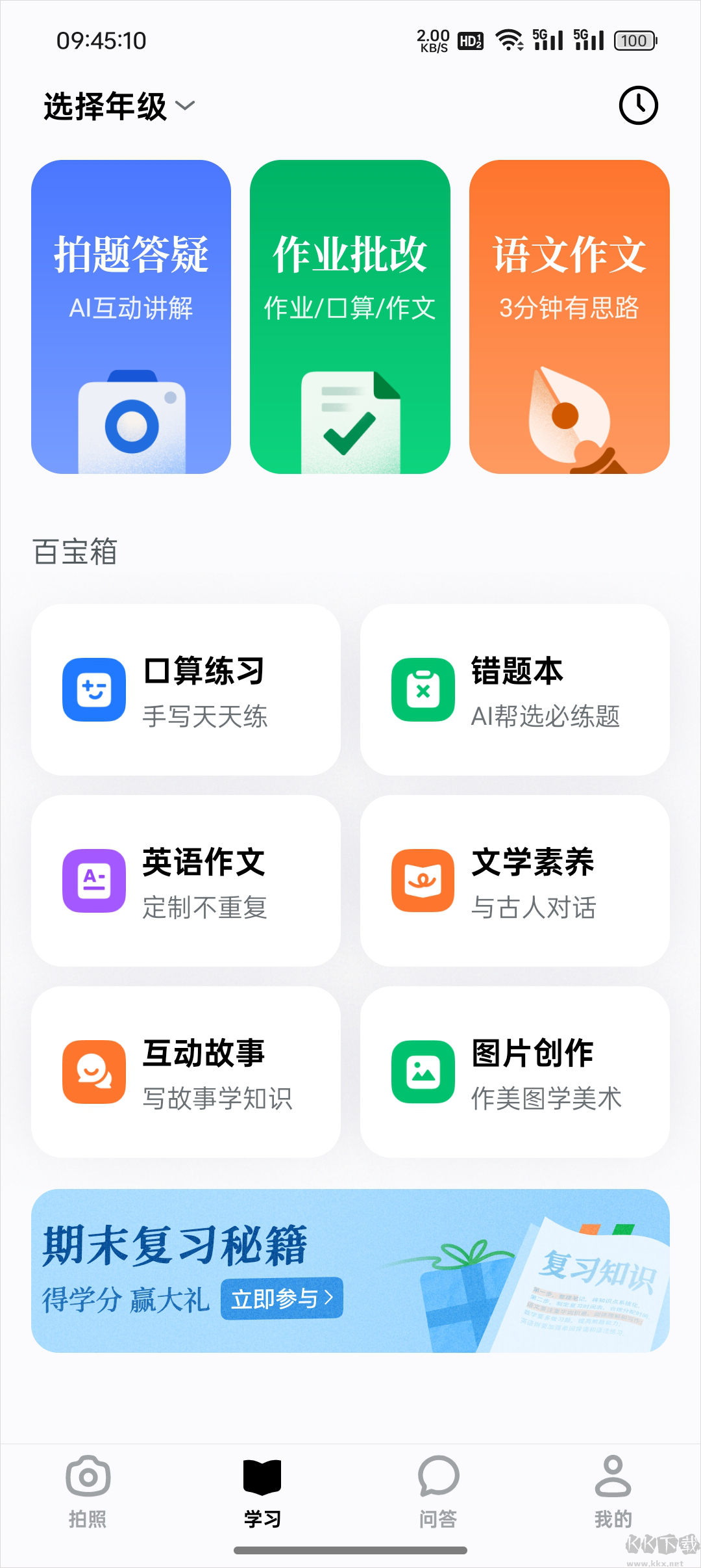 全面的批改相机,覆盖作业、作文、口算等多种场景,识别准确、反馈及时;