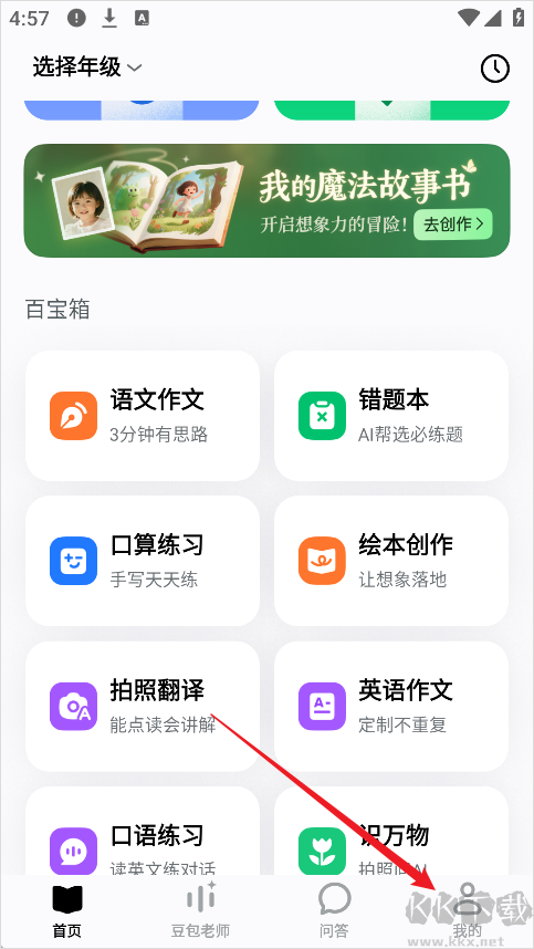 1、打开豆包爱学App,进入主界面后点击右下角的【我的】选项。