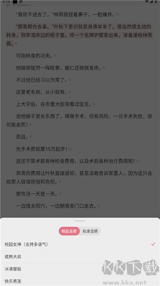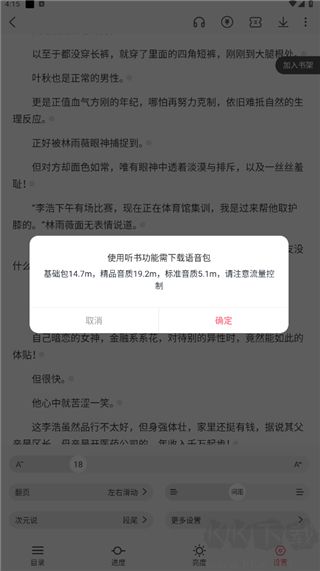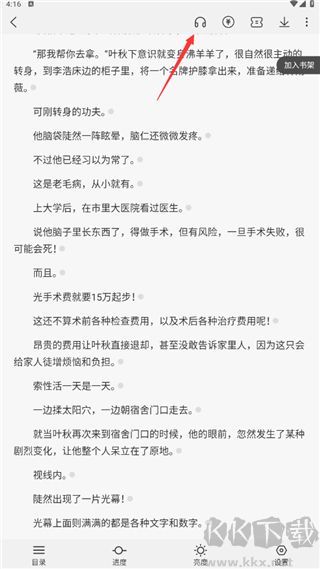 1、进入APP登录账号,任意点击小说点击屏幕,在上方点击耳机图标