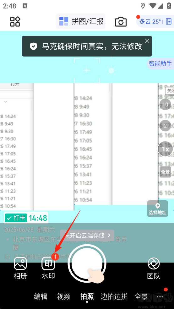 马克水印相机app是一款高清工作水印拍照软件,采用精准的时间地点定位技术,可以自动实时校准,确保拍摄的照片和视频都能清晰带上时间、地点、项目名称等水印信息,真实还原现场场景。软件操作简单,一键拍摄就能生成带水印的照片或视频,可以帮助你记录工作的时间与地点,还能防止照片被篡改,切实保护你的工作权益。需要的朋友快来下载试试吧!
