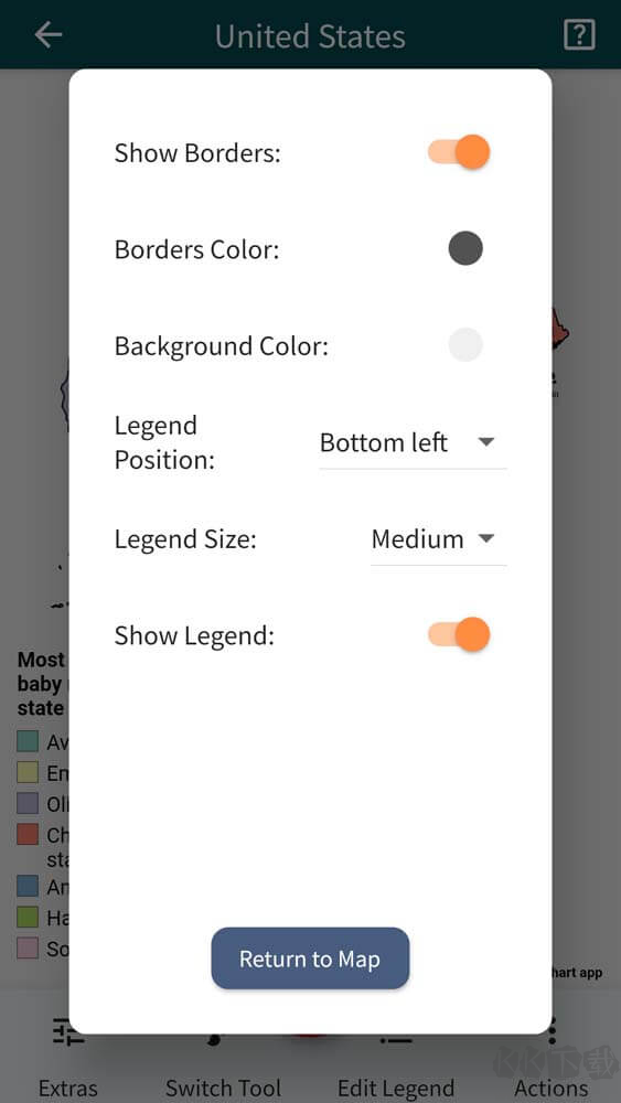 5、你还可以更改地图的背景或边框颜色, 隐藏元素、设置图例样式等。