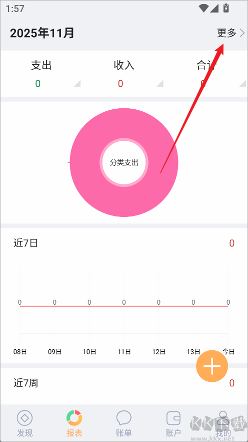 1、打开天天记账后,先点击底部导航栏中的【报表】进入统计页面。