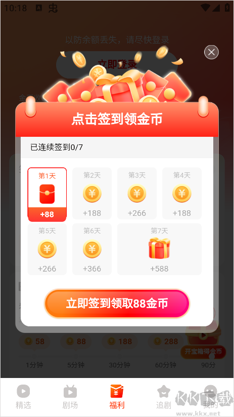 2、进入福利板块后点击签到可以领取金币以及红包。