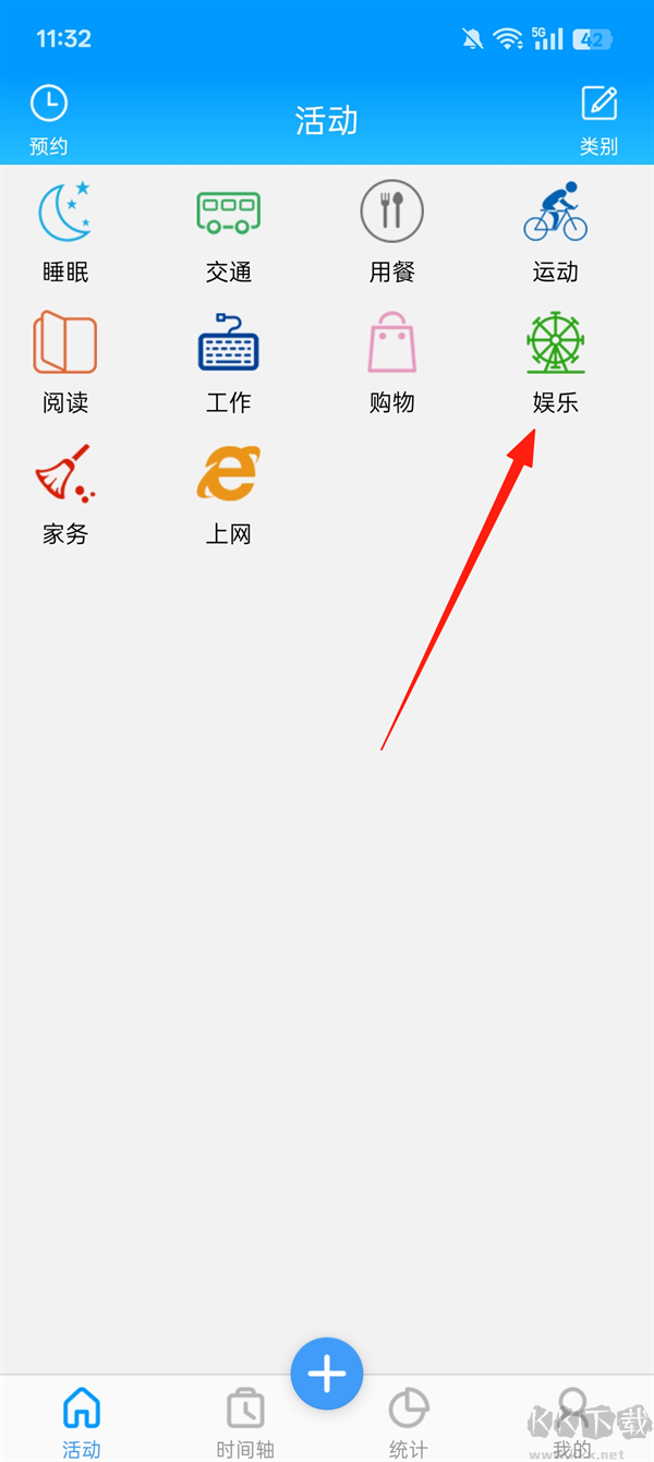 1、打开软件,选择你要记录时间的活动,以娱乐为例