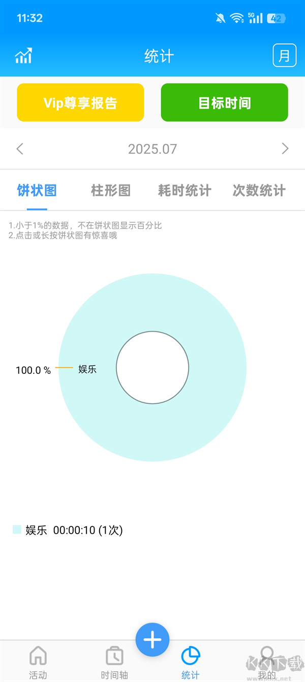 4、还可以在【统计】里查看各项事宜所占据的时长